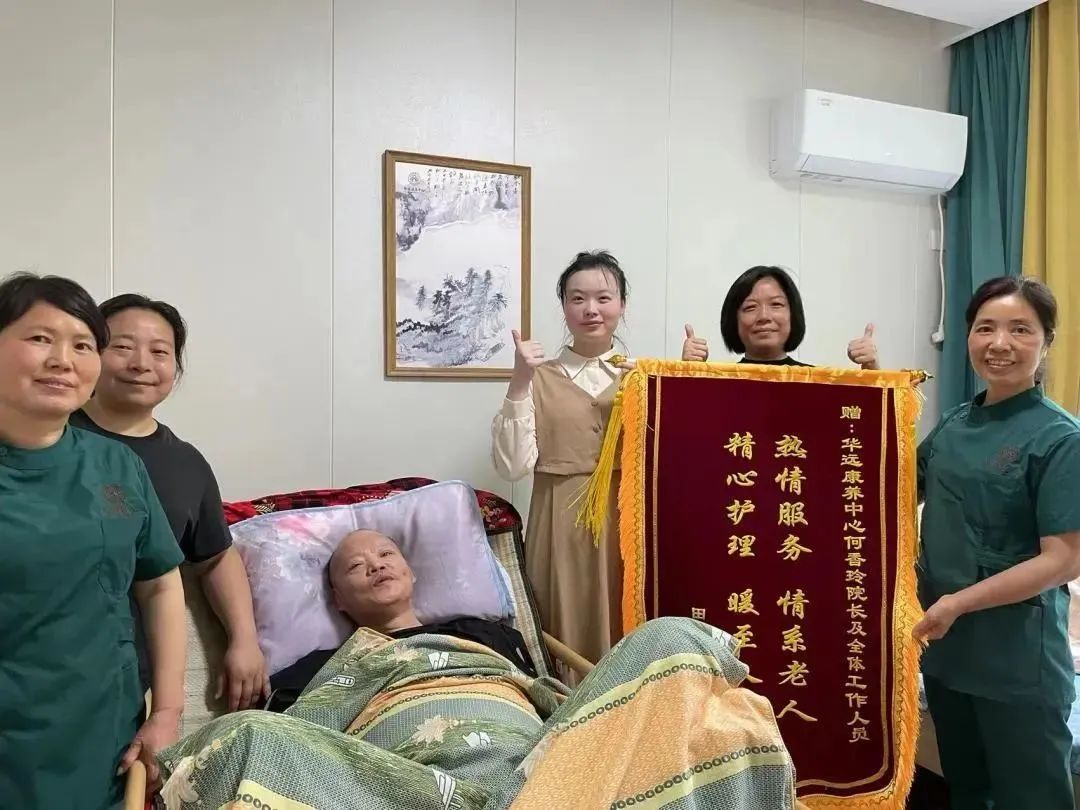 看到父親開朗的笑顏、從消瘦到有肉肉的身體、逐漸穩(wěn)定的血糖和血壓,作為女兒的小田的也慢慢覺得放心和慶幸。放心的把父親放在華遠(yuǎn)康養(yǎng)中心照料,慶幸自己當(dāng)初的選擇沒有錯(cuò)。于是在天朗氣清的四月,她帶著一面紅彤彤的錦旗敲響了院長辦公室的門。